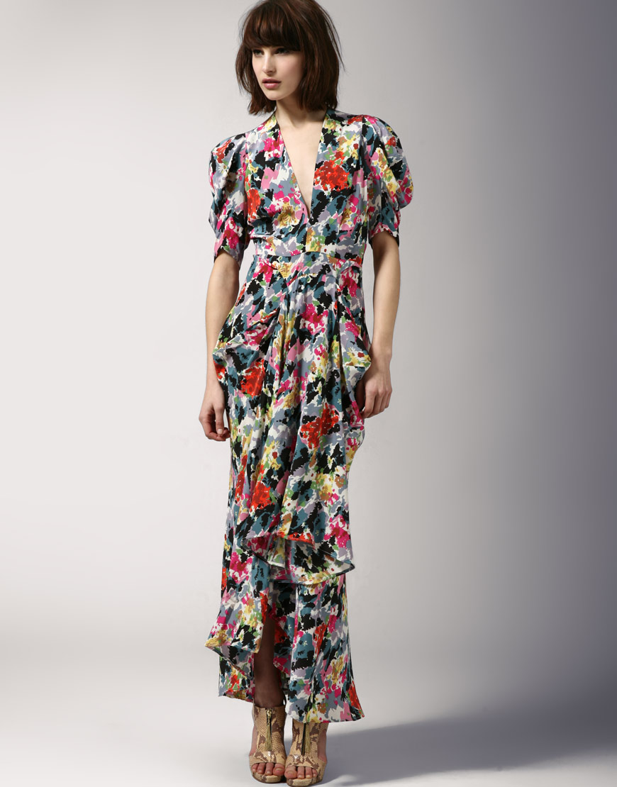Future Classics Silk Crepe Modern Peasant Maxi, £795 and Erdem Fuji Floral Print Silk Dress, £880